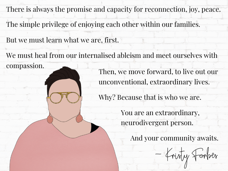Kristy understands the very real challenges neurodivergent people and their families face, and the often misunderstood and undermined position they are in.